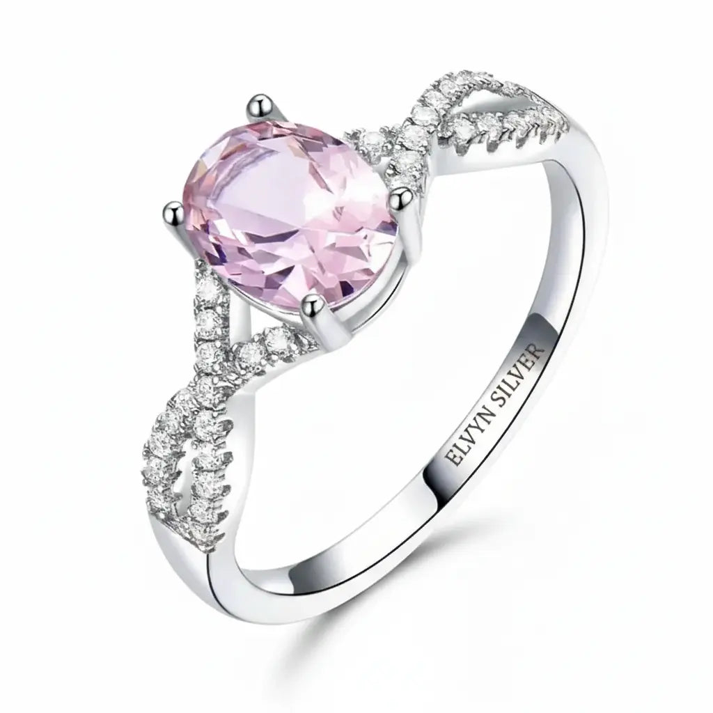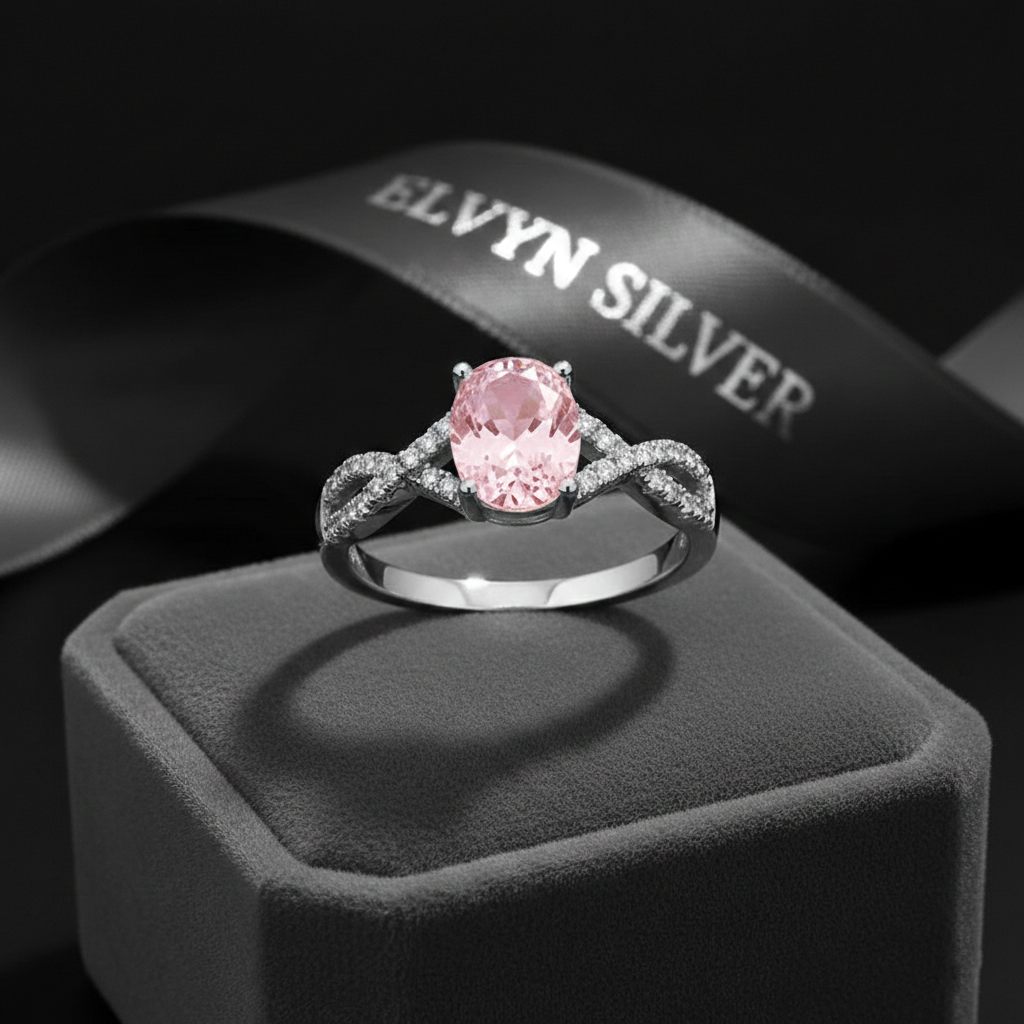 This elegant ring features a stunning pink morganite gemstone set in 925 sterling silver, enhanced with sparkling AAA+ cubic zircon stones. Finished with white gold plating, it offers a perfect balance of romance, luxury, and everyday elegance.